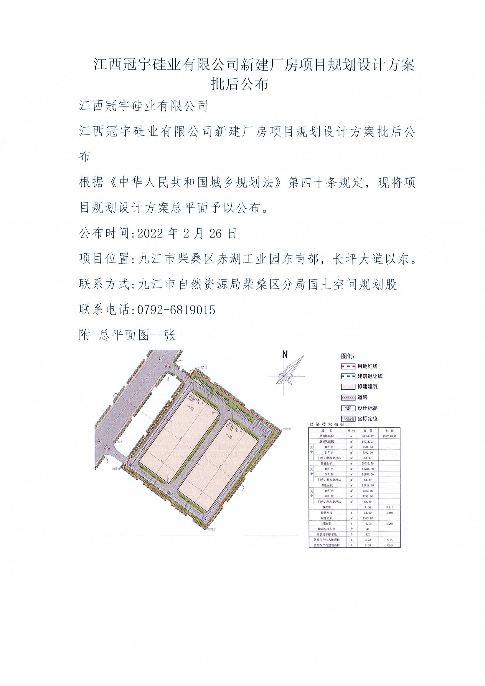 江西冠宇硅业有限公司新建厂房项目规划设计方案批后公布