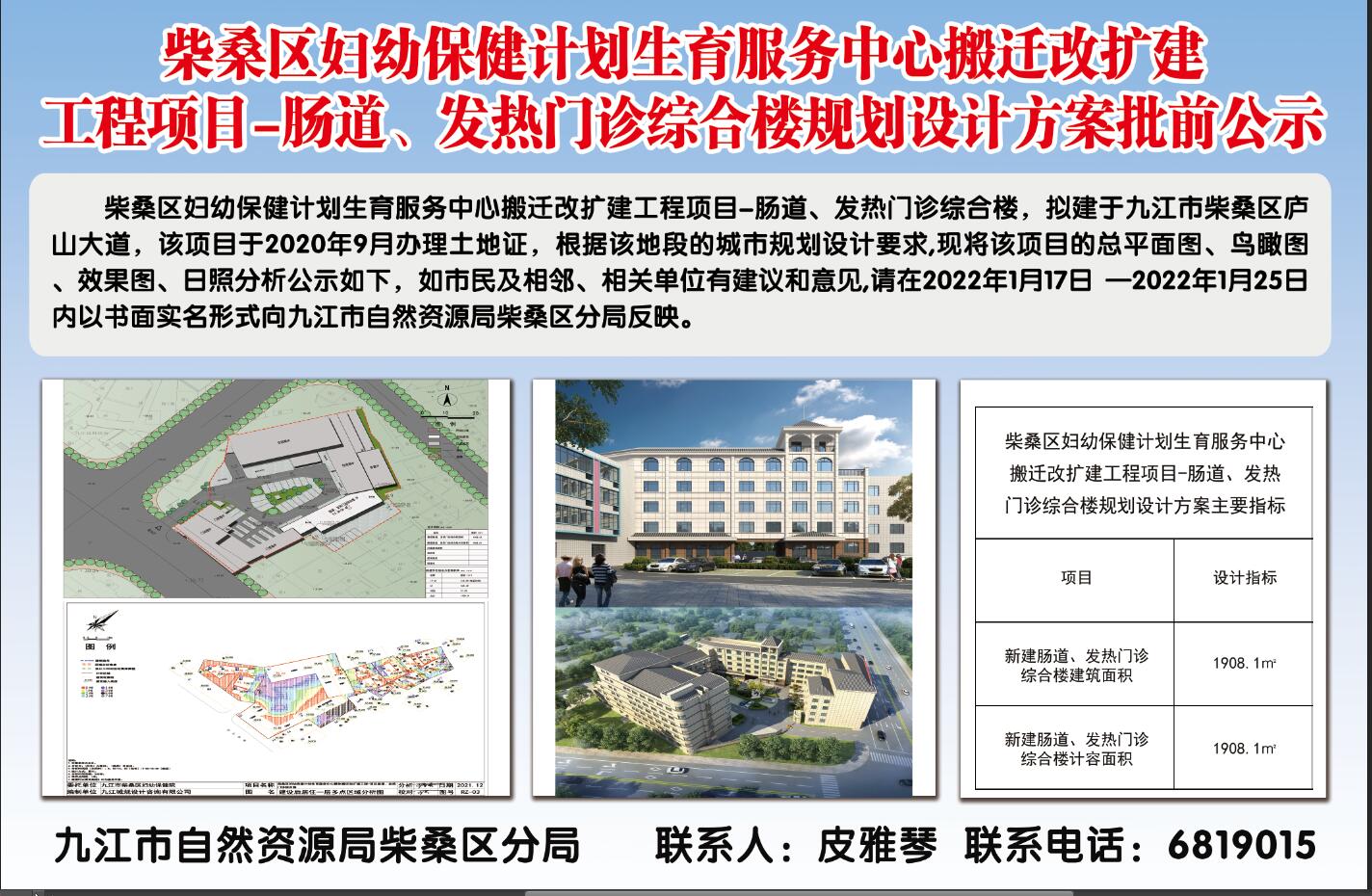 柴桑区妇幼保健计划生育服务中心搬迁改扩建 工程项目*肠道、发热门诊综合楼规划设计方案批前公示