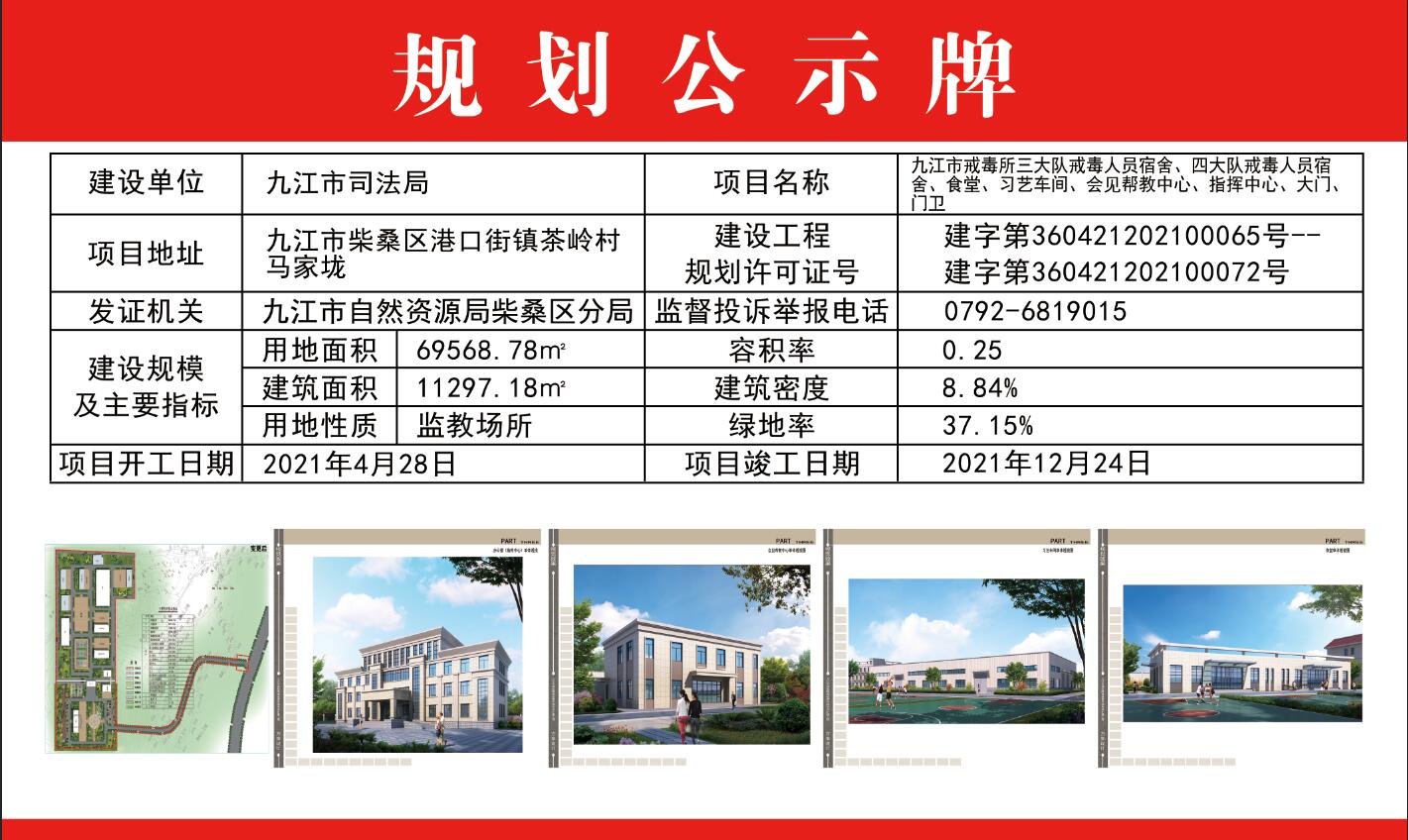 九江市戒毒所三大队戒毒人员宿舍、四大队戒毒人员宿舍、食堂、习艺车间、会见帮教中心、指挥中心、大门、门卫项目批后公示