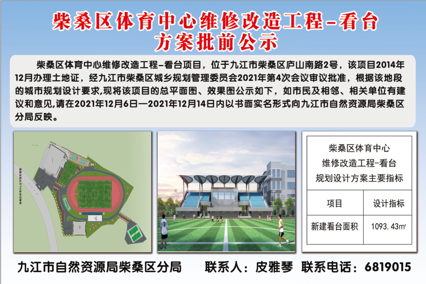 柴桑区体育中心维修改造工程*看台方案批前公示