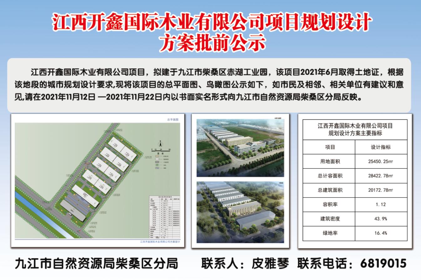 江西开鑫国际木业有限公司项目规划设计方案批前公示