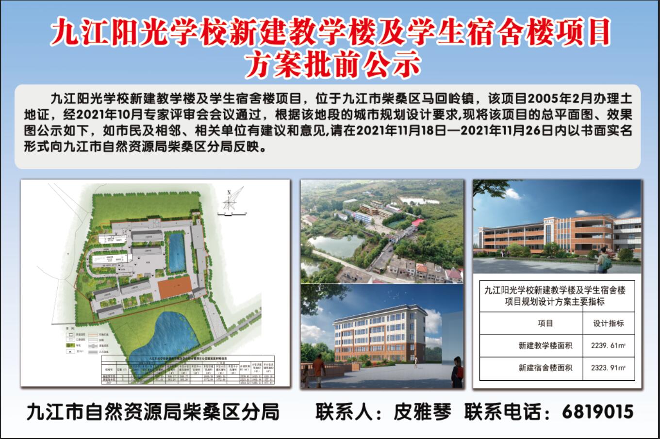 九江阳光学校新建教学楼及学生宿舍楼项目方案批前公示