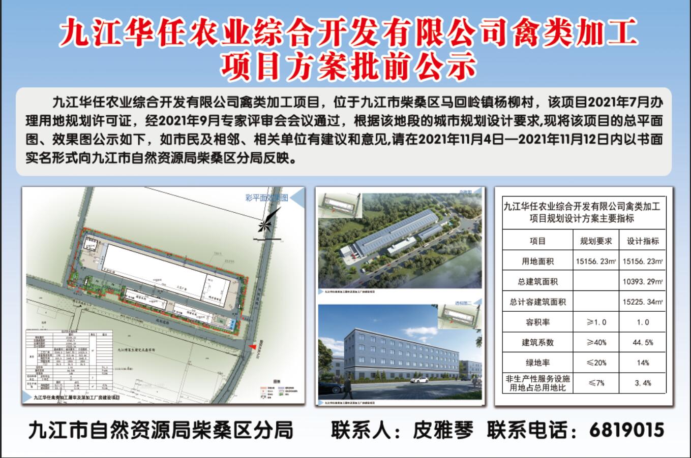 九江华任农业综合开发有限公司禽类加工项目方案批前公示