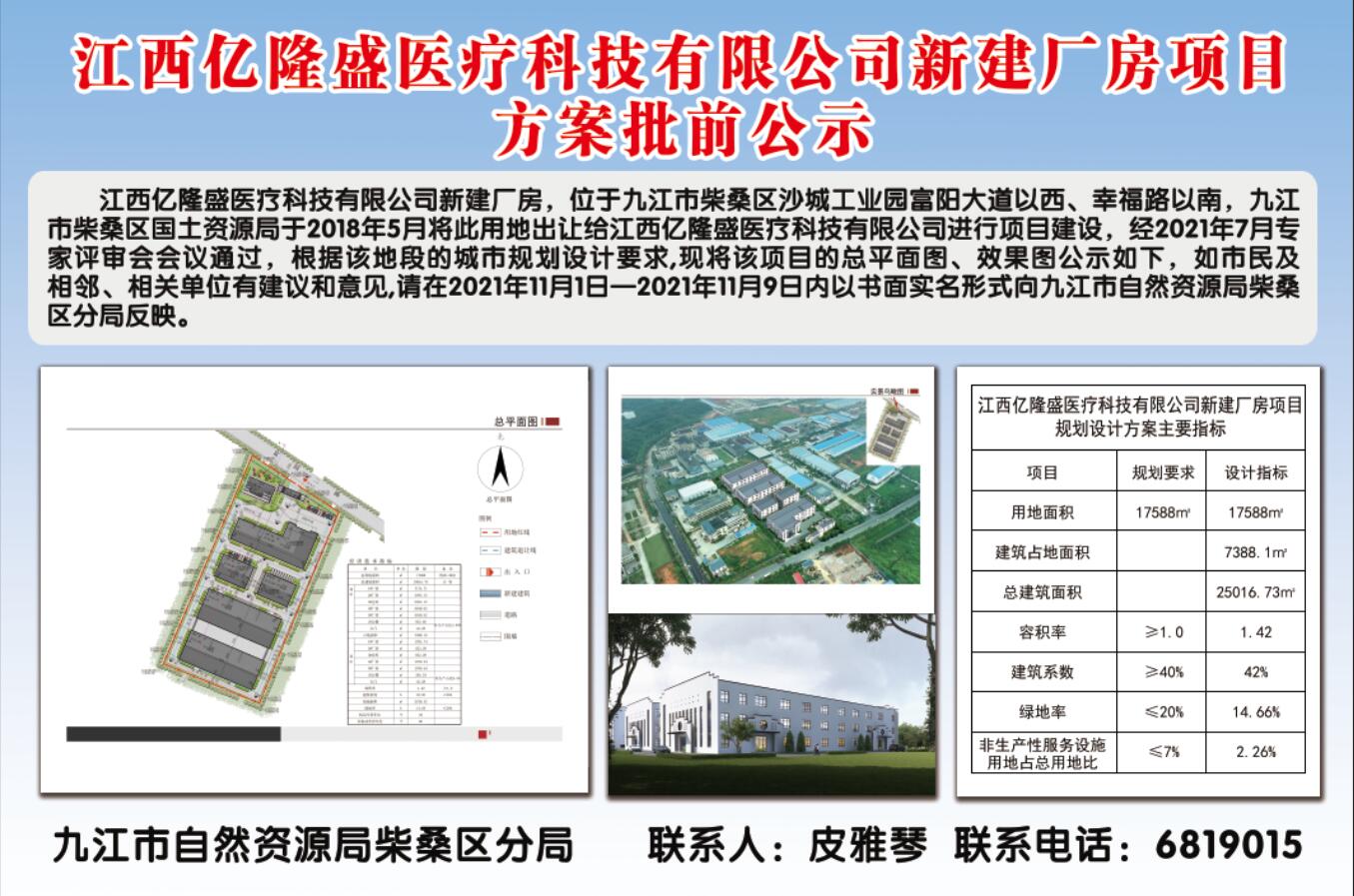 江西亿隆盛医疗科技有限公司新建厂房项目方案批前公示