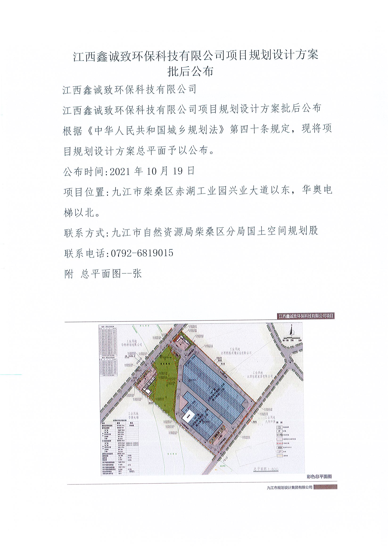 江西鑫诚致环保科技有限公司项目规划设计方案批后公布