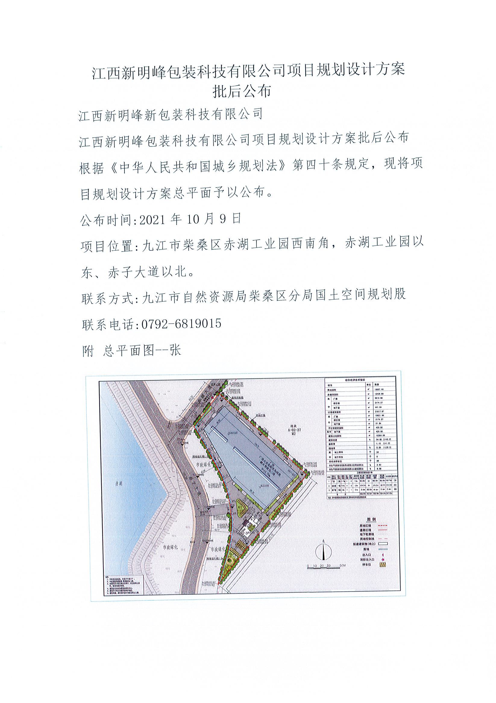 江西新明峰包装科技有限公司项目规划设计方案批后公布