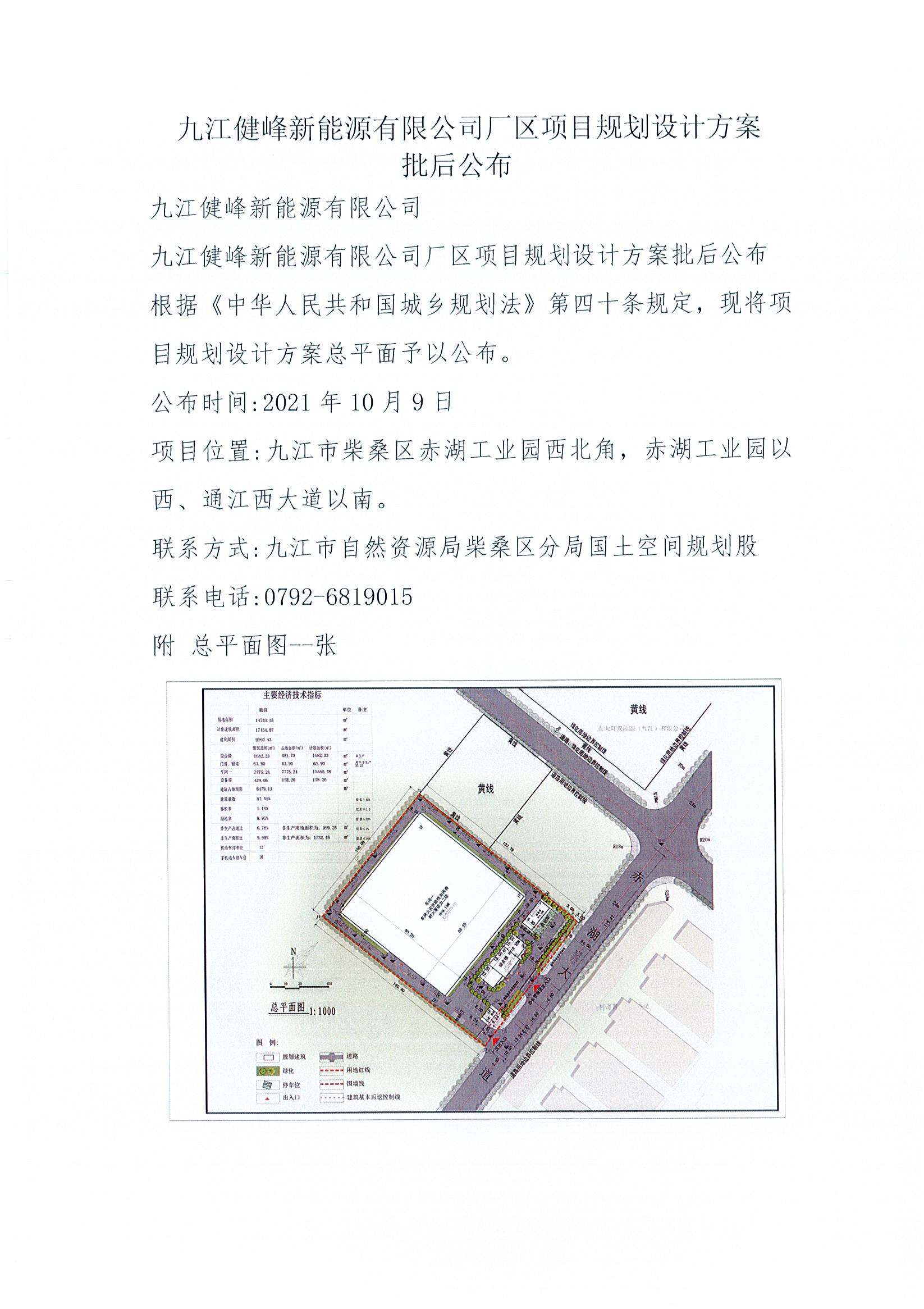 九江健峰新能源有限公司厂区项目规划设计方案批后公布
