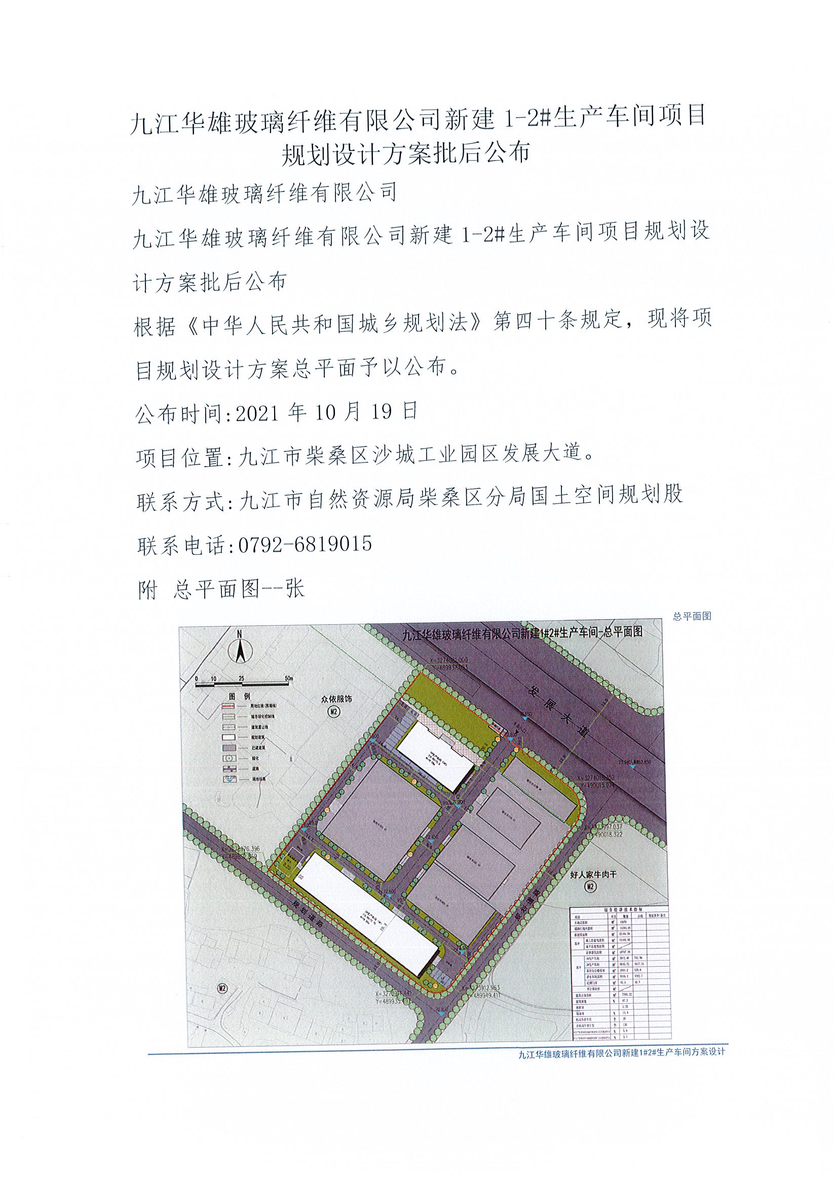 九江华雄玻璃纤维有限公司新建1-2#生产车间项目规划设计方案批后公布