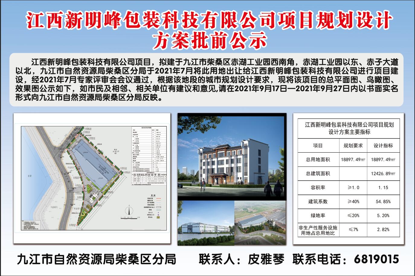 江西新明峰包装科技有限公司项目规划设计方案批前公示