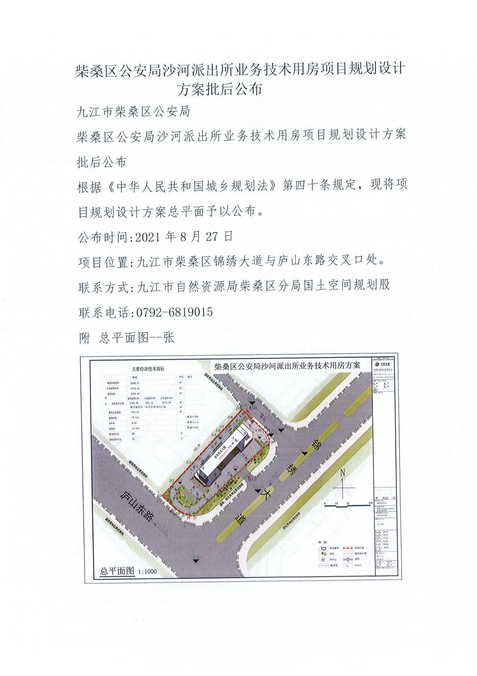 柴桑区公安局沙河派出所业务技术用房项目规划设计方案批后公布