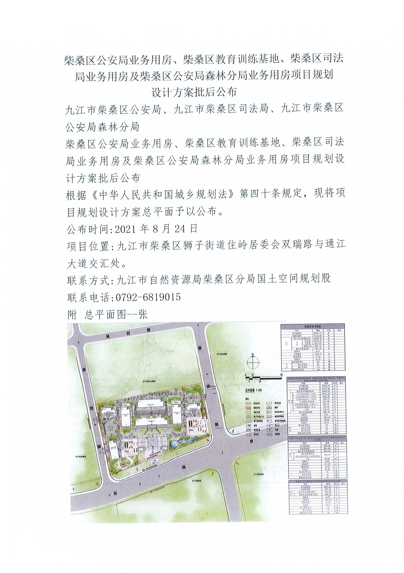 柴桑区公安局业务用房、柴桑区教育训练基地、柴桑区司法局业务用房及柴桑区公安局森林分局业务用房项目规划设计方案批后公布