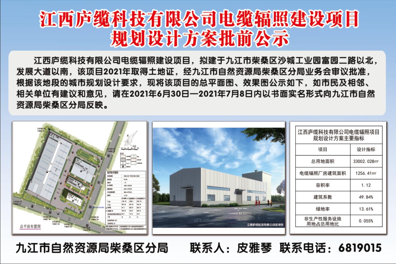 江西庐缆科技有限公司电缆辐照建设项目规划设计方案批前公示