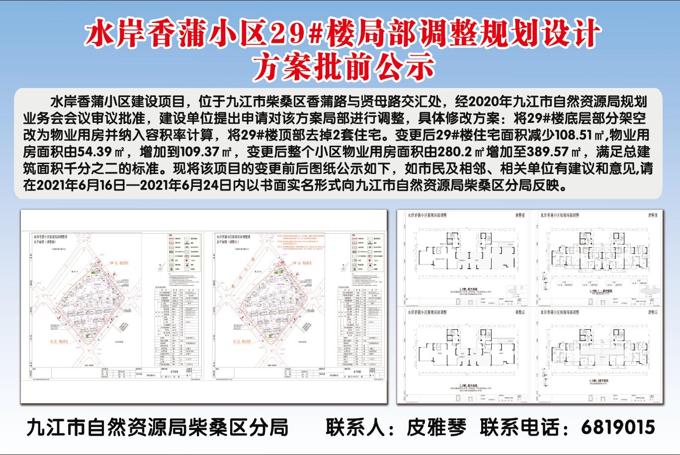 水岸香蒲小区29#楼局部调整规划设计方案批前公示