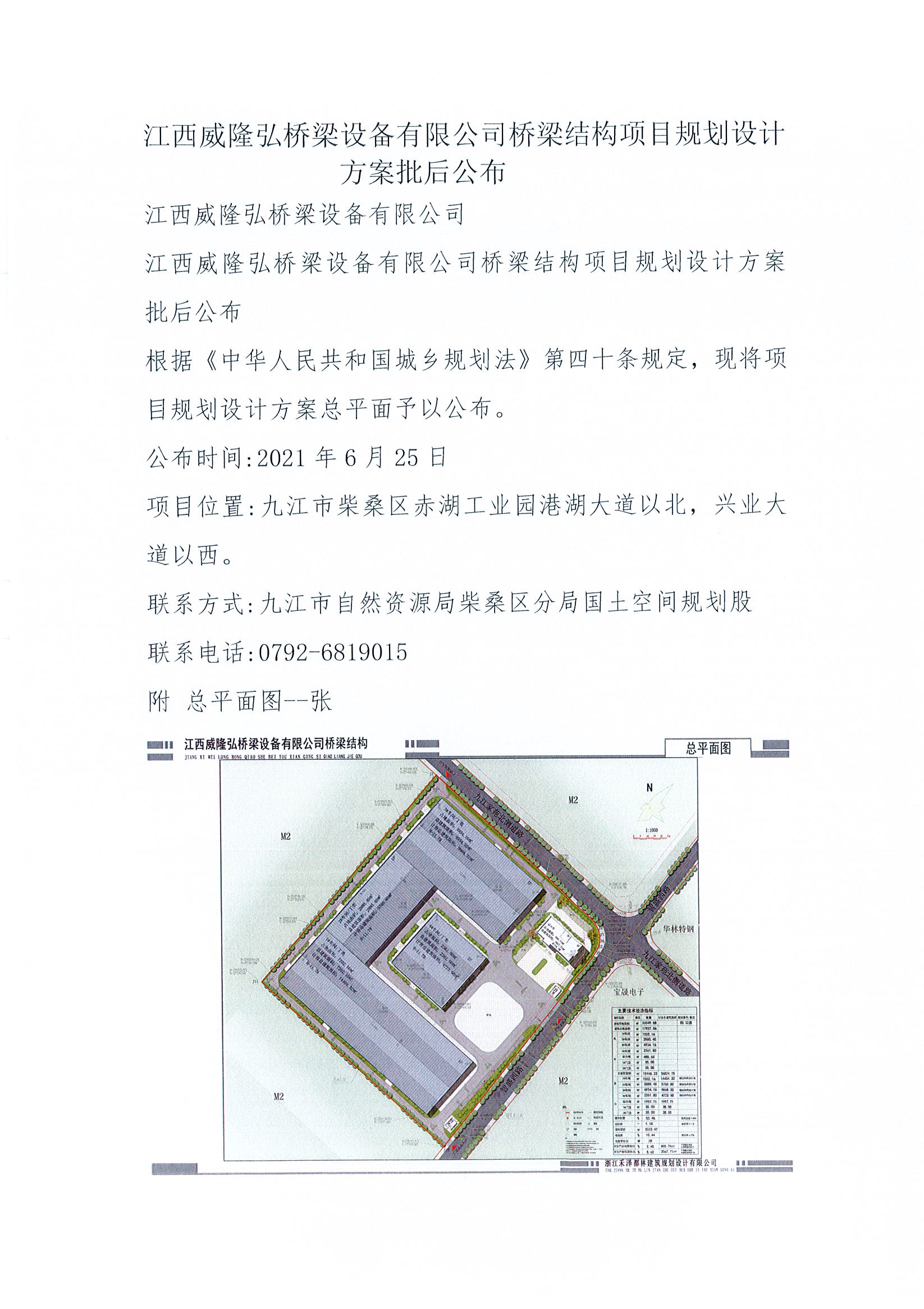 江西威隆弘桥梁设备有限公司桥梁结构项目规划设计方案批后公布