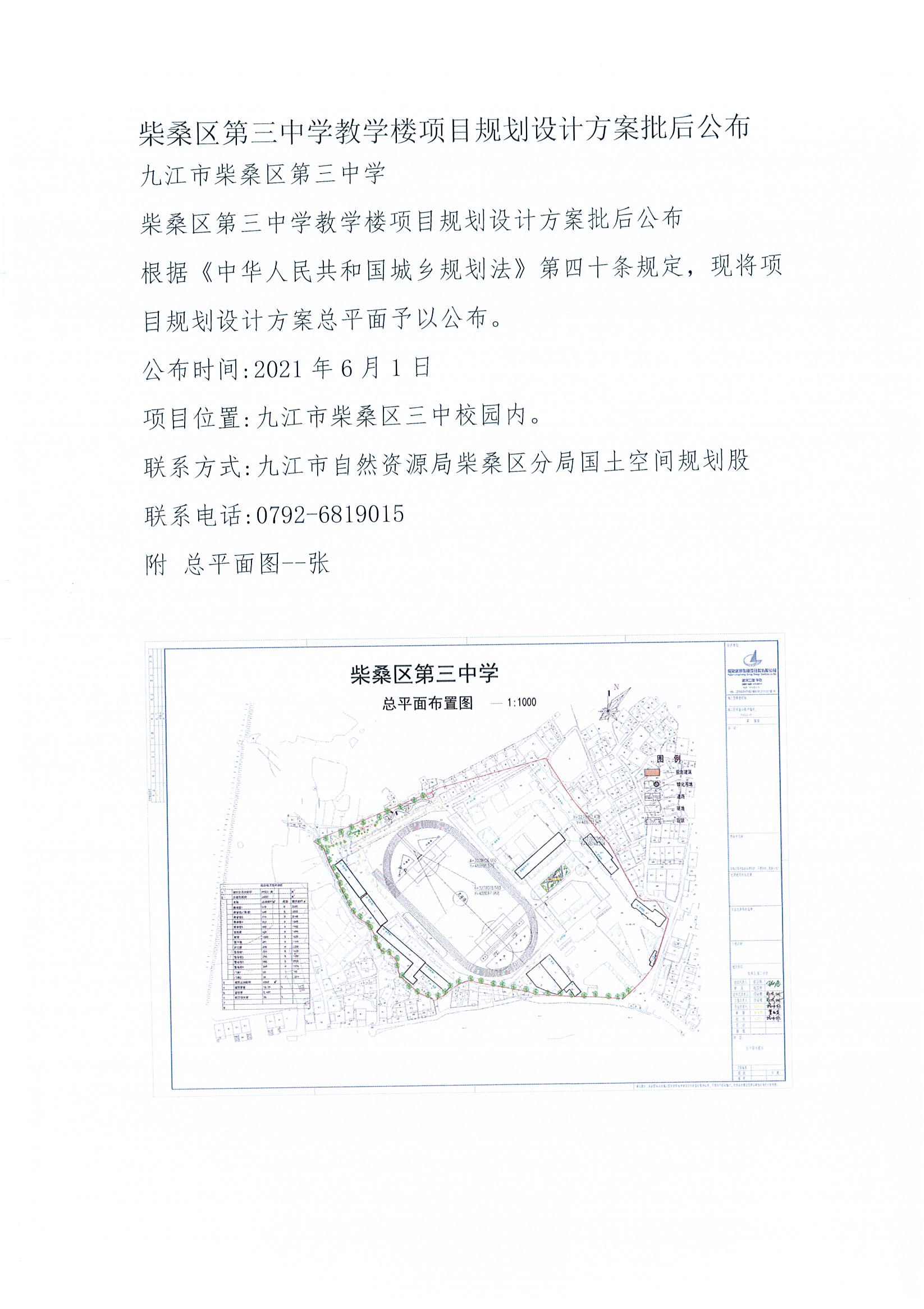 柴桑区第三中学教学楼项目规划设计方案批后公布