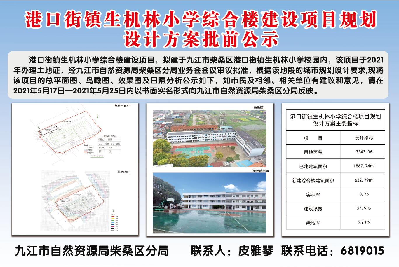 港口街镇生机林小学综合楼建设项目规划设计方案批前公示