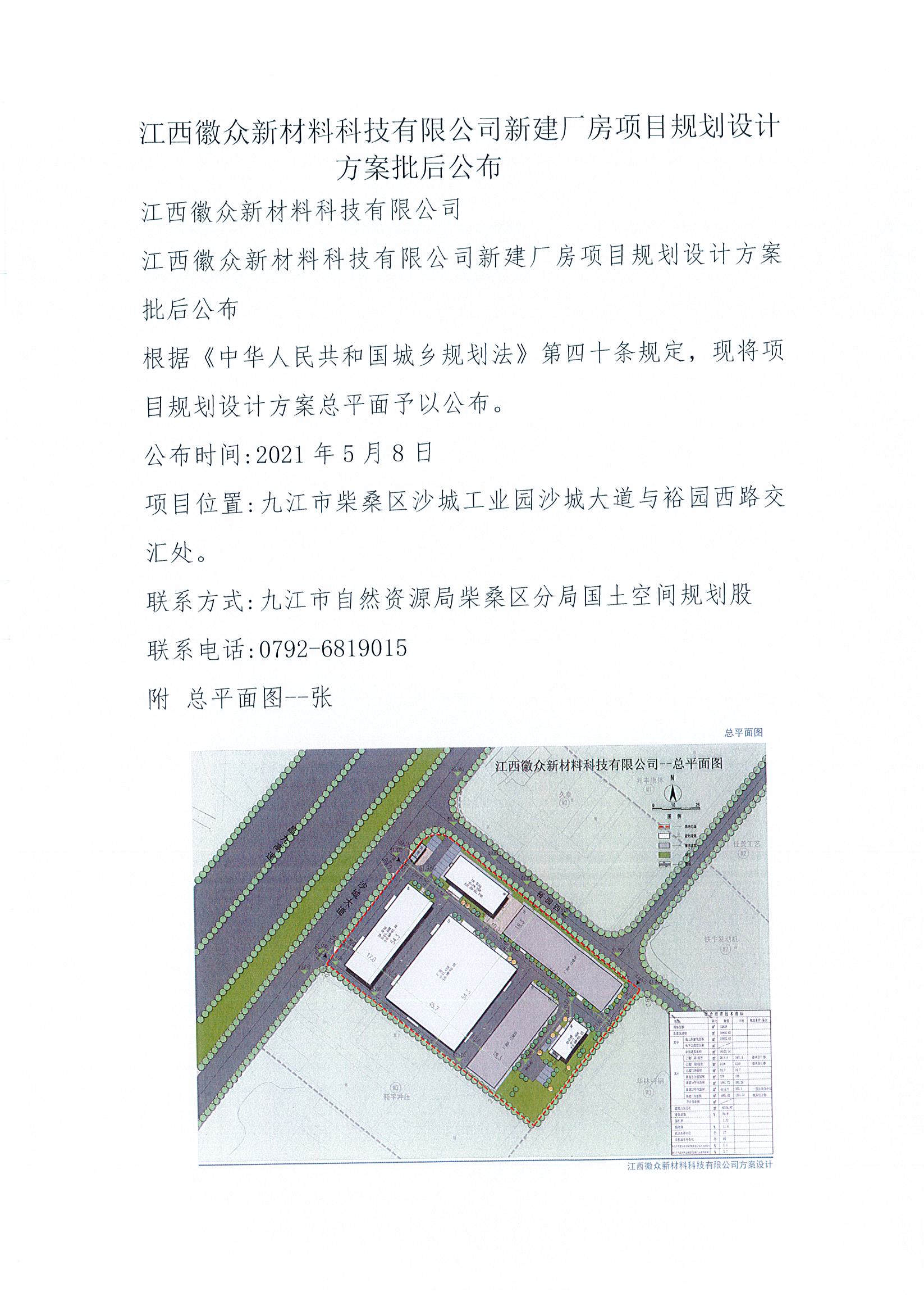 江西徽众新材料科技有限公司新建厂房项目规划设计方案批后公布