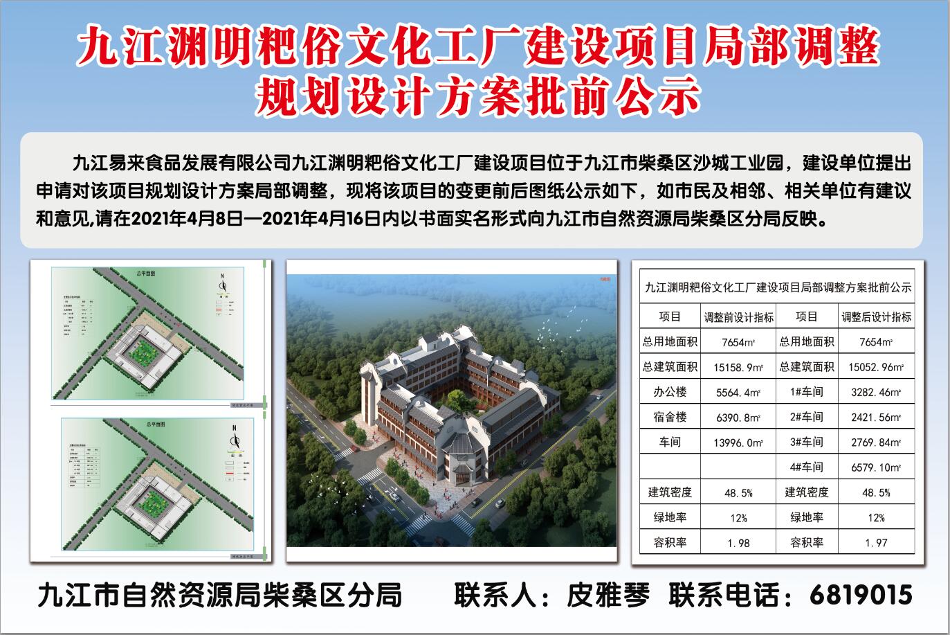 九江渊明粑俗文化工厂建设项目局部调整规划设计方案批前公示
