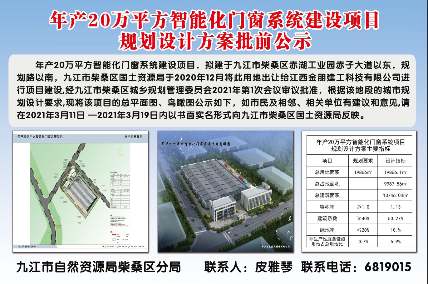年产20万平方智能化门窗系统建设项目规划设计方案批前公示