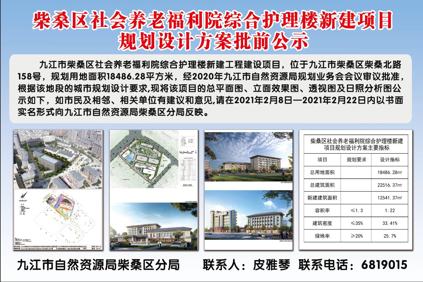 柴桑区社会养老福利院综合护理楼新建项目规划设计方案批前公示