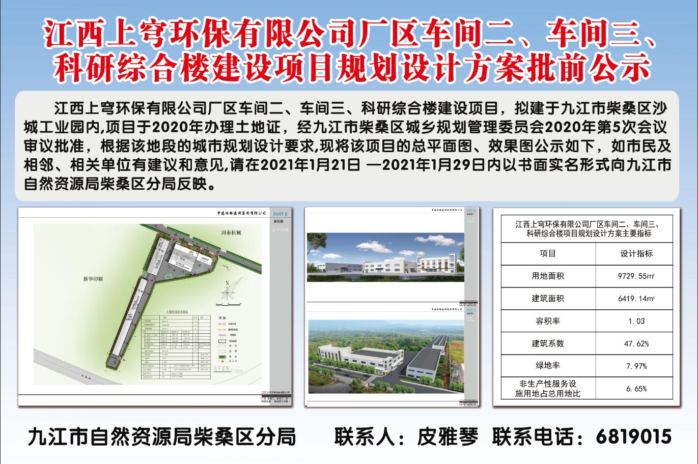 江西上穹环有限公司厂区车间二、车间三、科研综合楼建设项目规划设计方案批前公示
