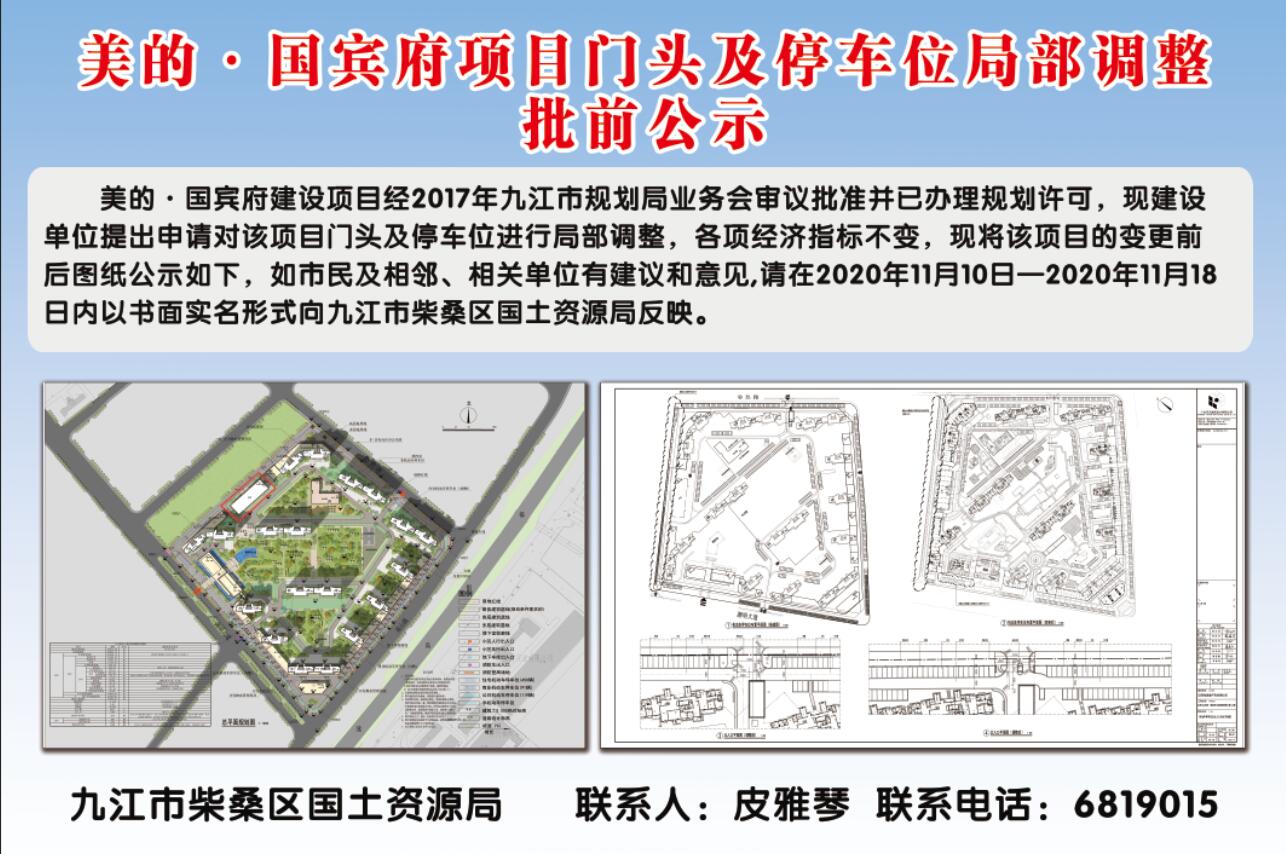 九江市柴桑区美的·国宾府项目门头及停车位局部调整批前公示