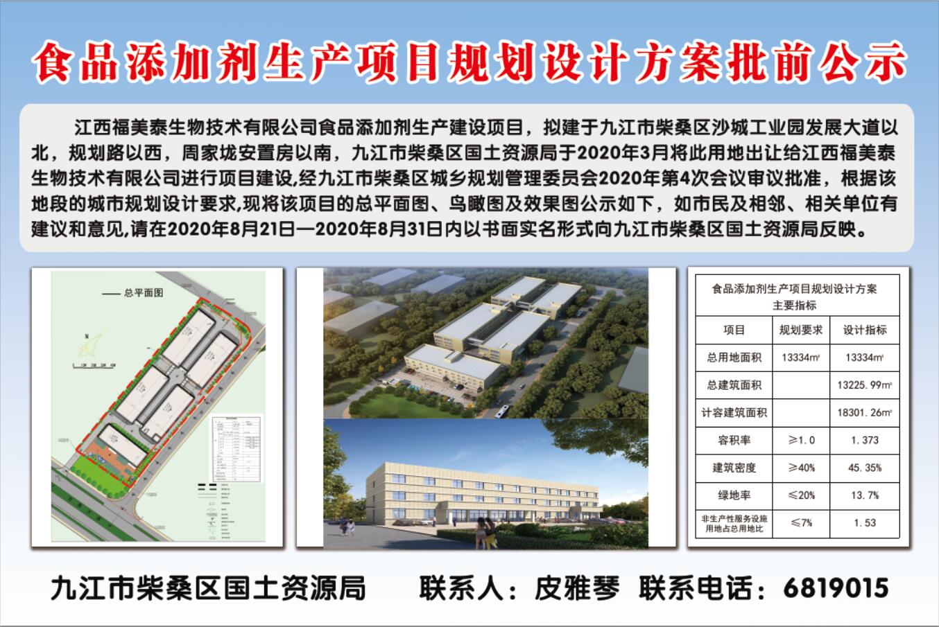江西福美泰生物技术有限公司食品添加剂生产项目规划设计方案批前公示
