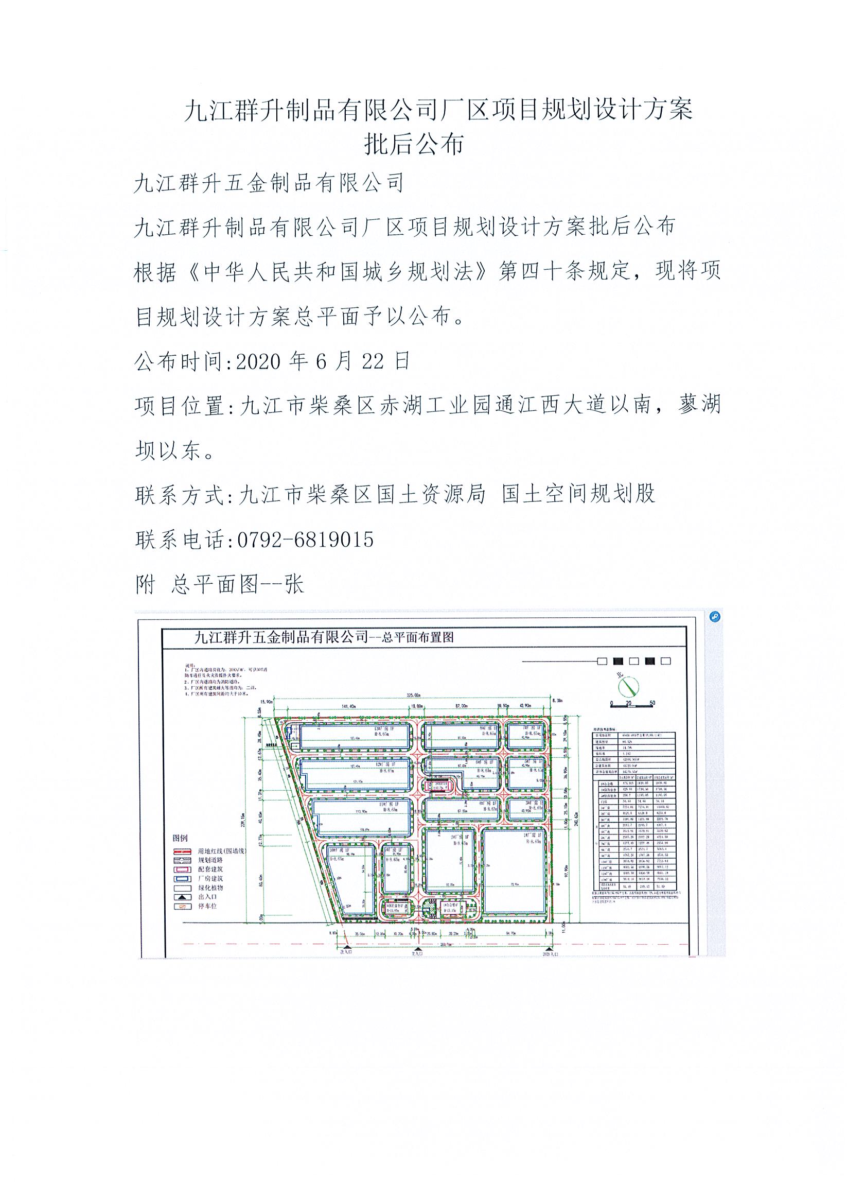 九江群升制品有限公司厂区项目规划设计方案批后公布