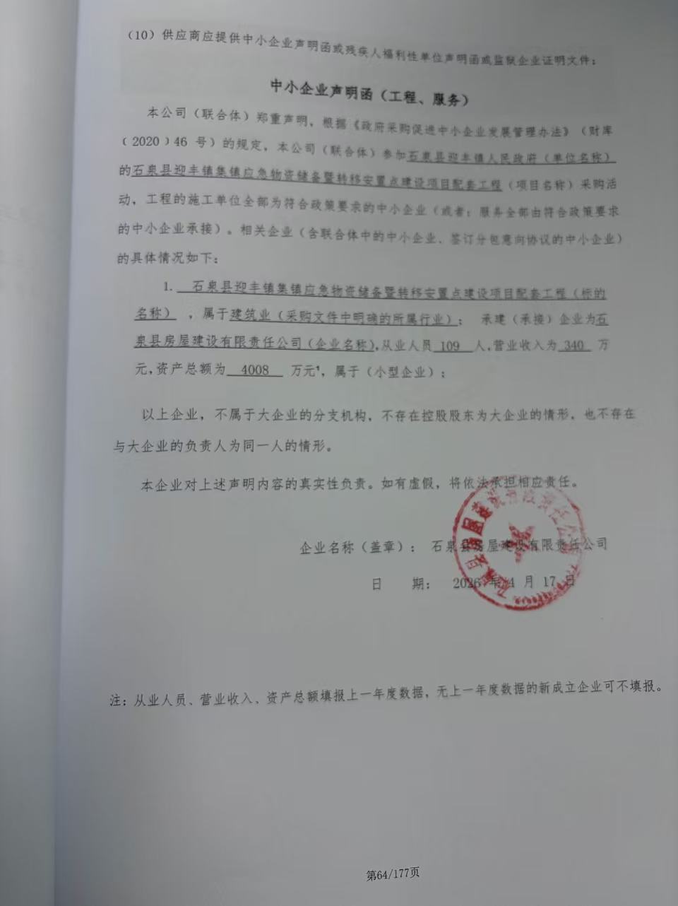 | * | 石泉县迎丰镇集镇应急物资储备暨转移安置点建设项目配套工程 | * | 无 |