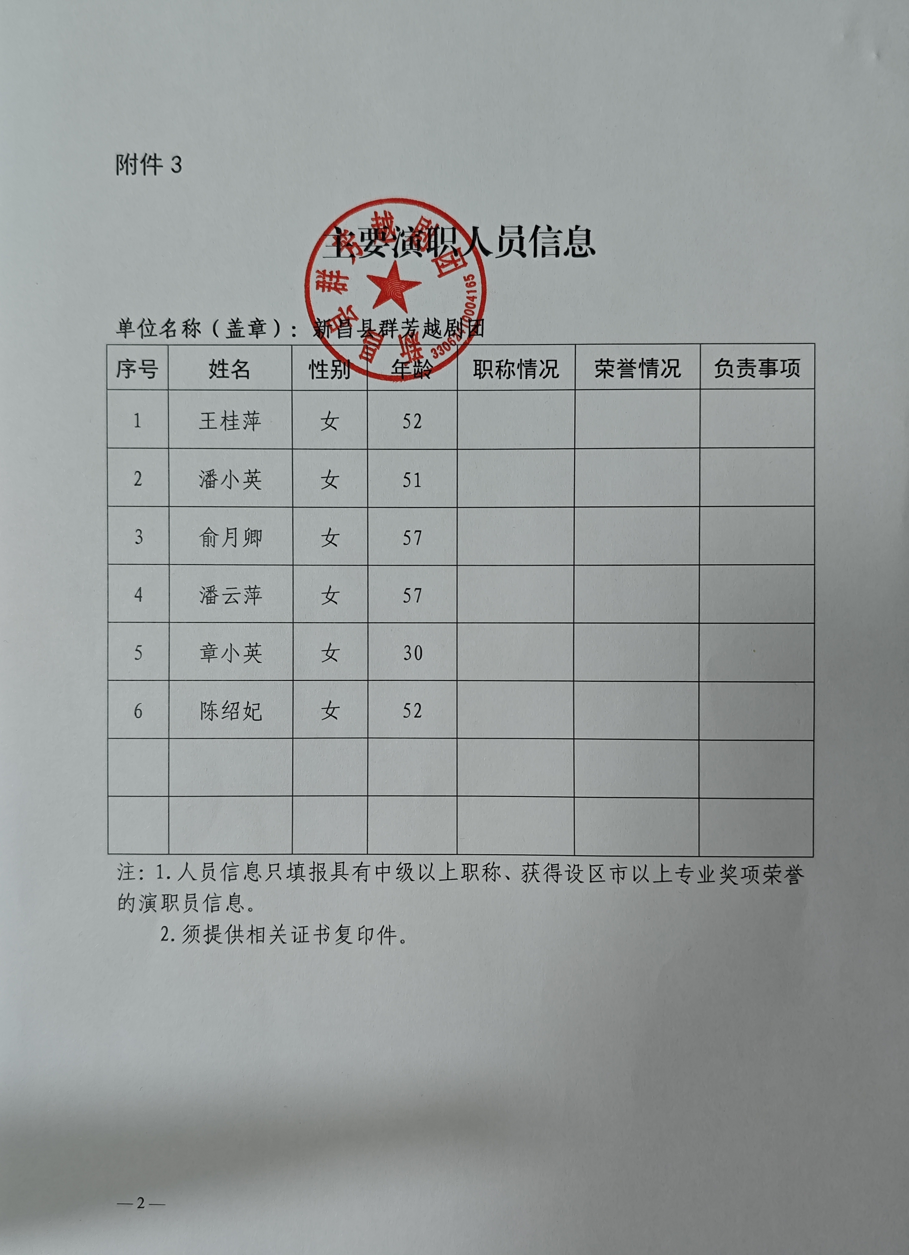 演职人员信息(按《公告》附件*格式填写):附件*.***