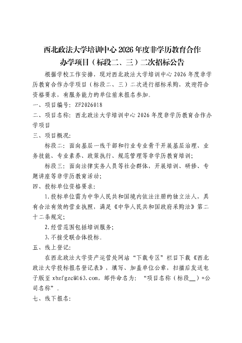 中心2026年度非学历教育合作办学项目(标段二、三)二次招标公告