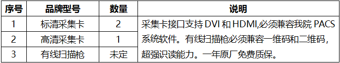 根据医院工作需要,拟对我院体检中心超声设备所需二张标清采集卡、耳鼻咽喉科电子喉镜所需一张高清采集卡采购项目、临床科室条码扫描的有线扫描枪进行市场调研,请有相关产品、服务能力且具有合法合格资质的公司参与介绍。