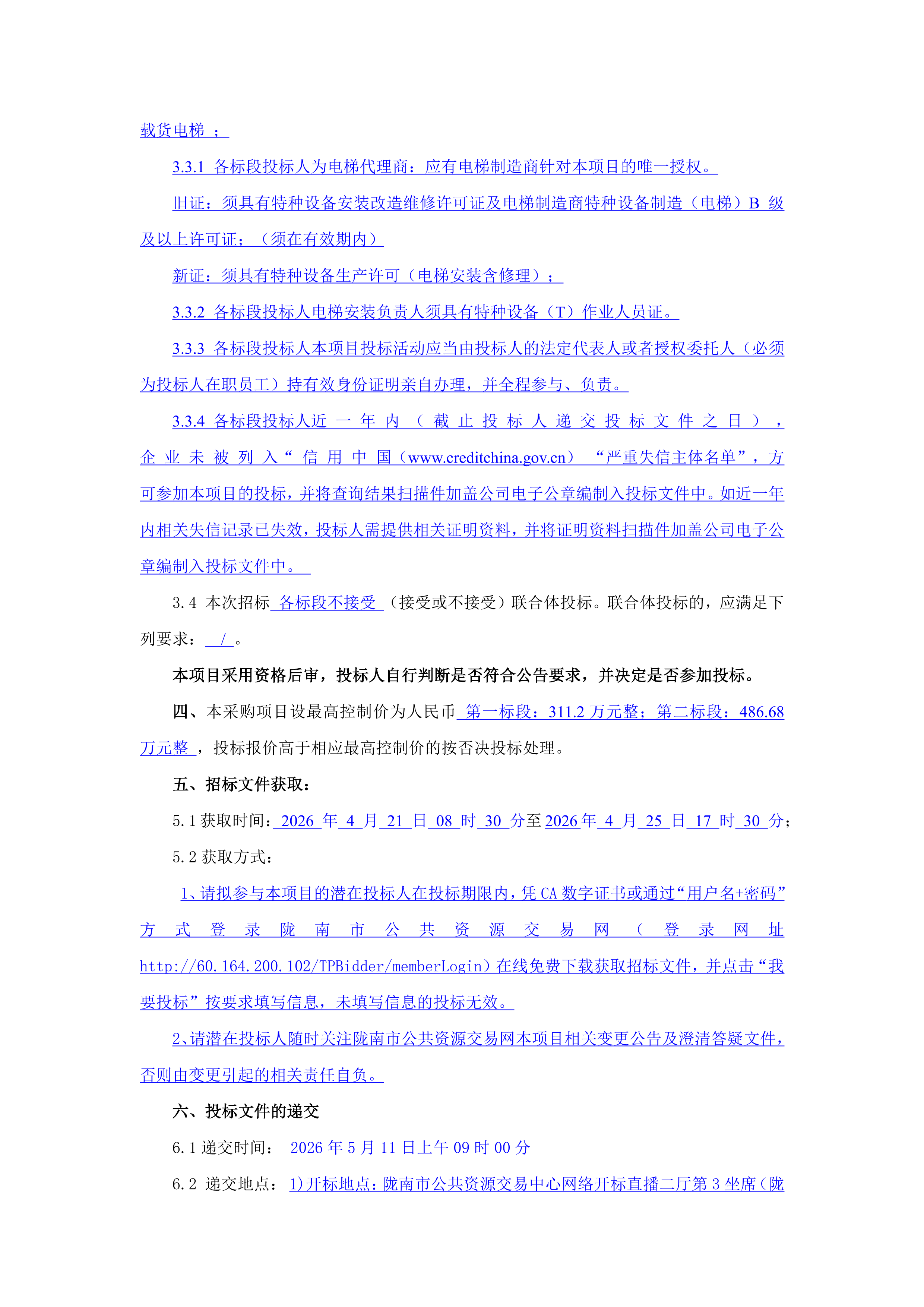 甘肃/陇南 招标采购