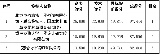 第一中标候选人 | 北京中咨路捷工程咨询有限公司(联合投标人:国家林业和草原局林草调查规划院) | ||