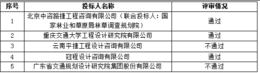 评标情况 | *、资格评审、形式评审与响应性评审情况: ![]() 云南平捷工程设计咨询有限公司因没有按照招标文件要求提供在广东建设信息网“进粤企业和人员诚信信息登记平台”专栏关于投标人进粤企业及人员信息录入的网页截图,所以不通过资格评审。 广东省交通规划设计研究院集团股份有限公司因项目负责人的签名确认表无对应的负责人亲笔签字,按照否决条款一览表条款号*.*.*相关内容,视为无效投标处理。 *、评审得分排名情况: ![]() | ||