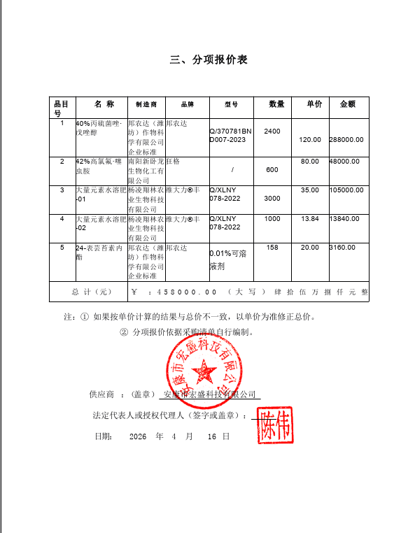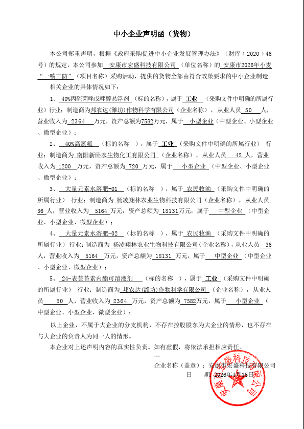 安康市2026年小麦“一喷三防”项目成交结果公告