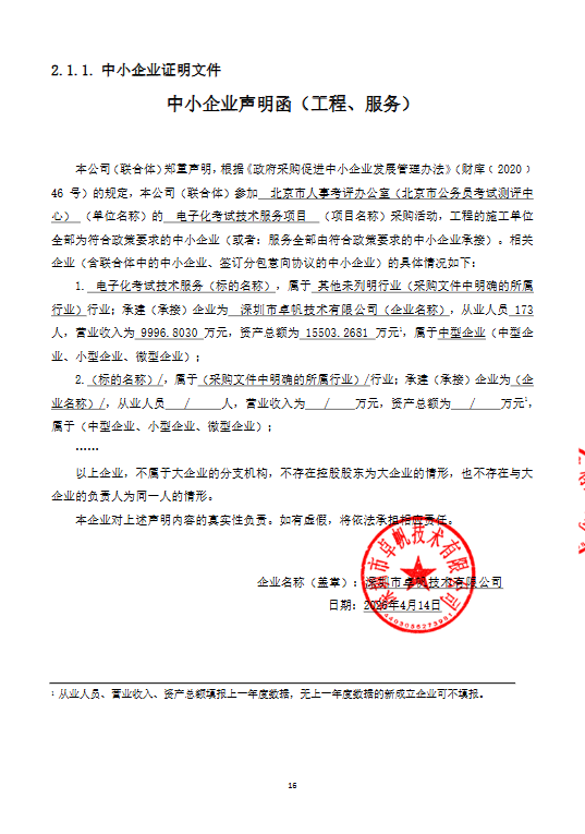 | 深圳市卓帆技术有限公司 | 北京市考试 | / | ** | 满足招标文件要求 |
