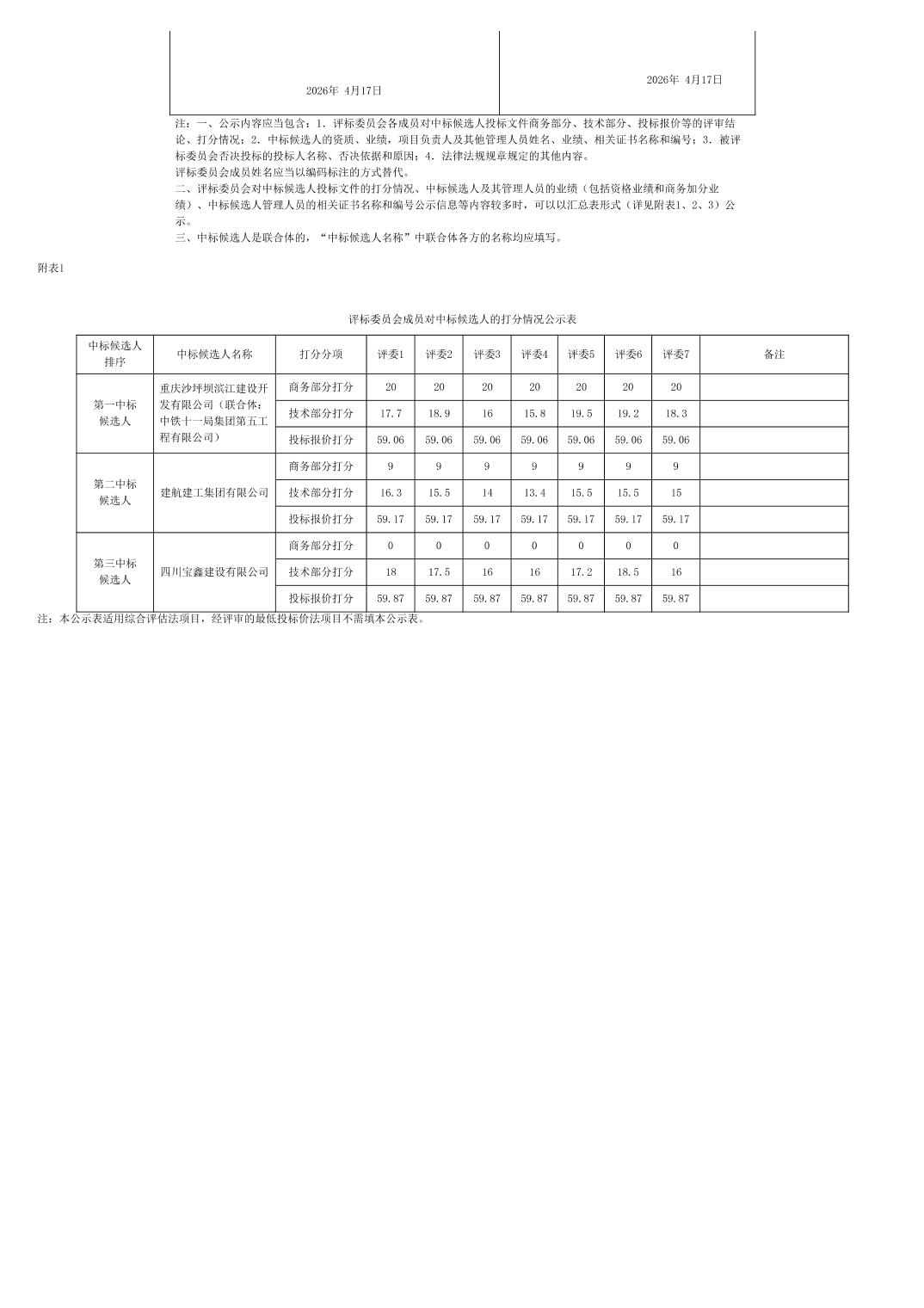 | 名称: | 沙坪坝区歌乐山街道、中梁山镇五个镇街污水管网更新改造项目(一期)二标段中标候选人公示 | ||||