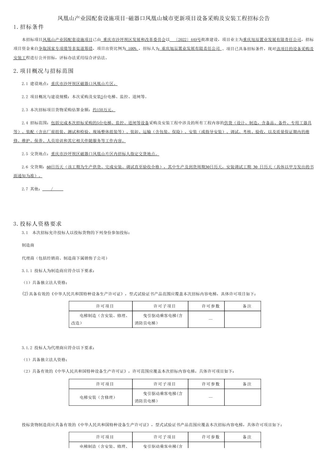 | 名称: | 凤凰山产业园配套设施项目*磁器口凤凰山城市更新项目设备采购及安装工程招标公告 | ||||