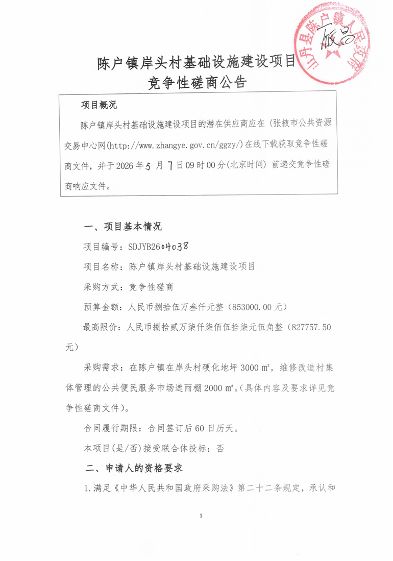 陈户镇岸头村基础设施建设项目竞争性磋商公告[采购/资审公告]