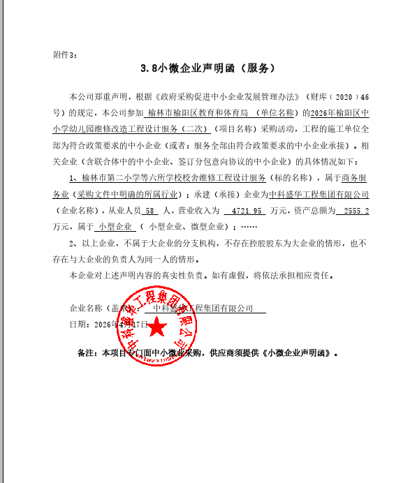 2026年榆阳区中小学幼儿园维修改造工程设计服务(二次)中标(成交)结果公告