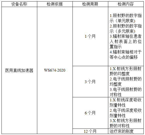 *.直线加速器稳定性检测依据、检测周期、检测内容见附表。
