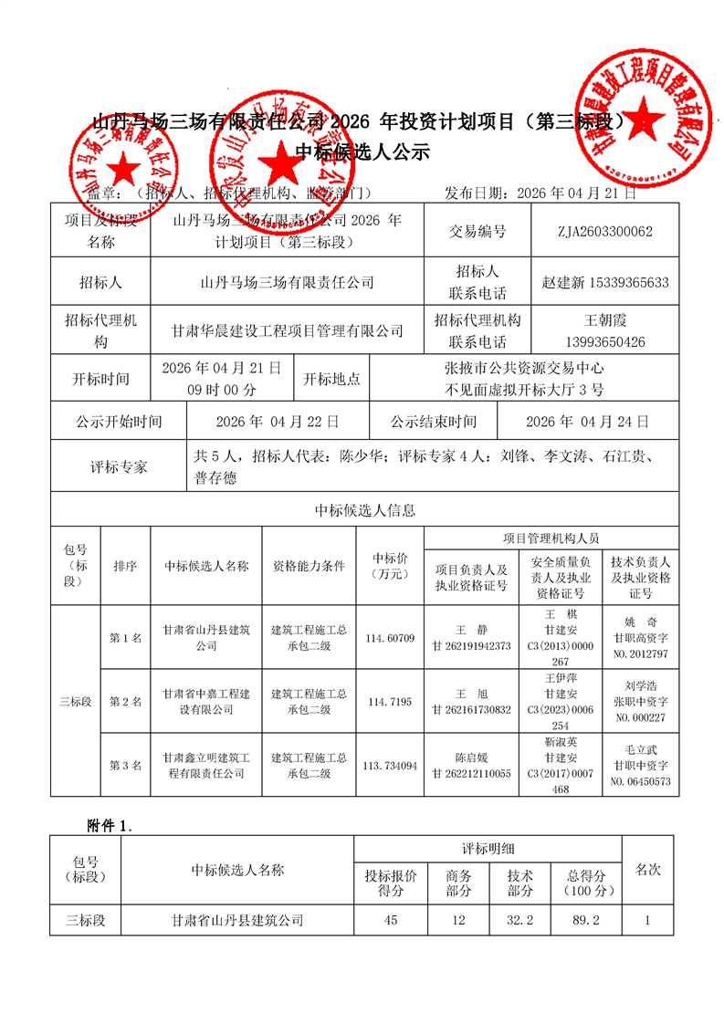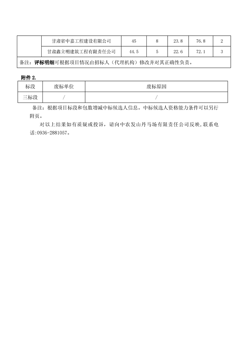 [市本级]山丹马场三场有限责任公司2026 年投资计划项目第三标段中标候选人公示[交易结果公示]