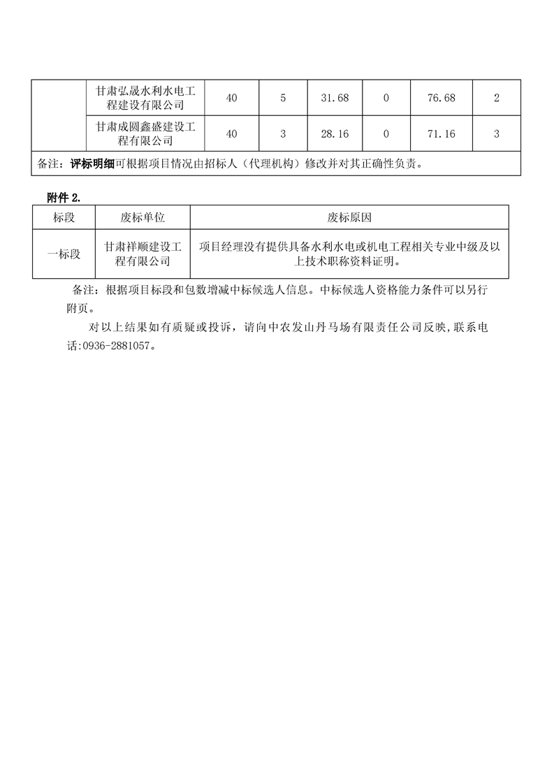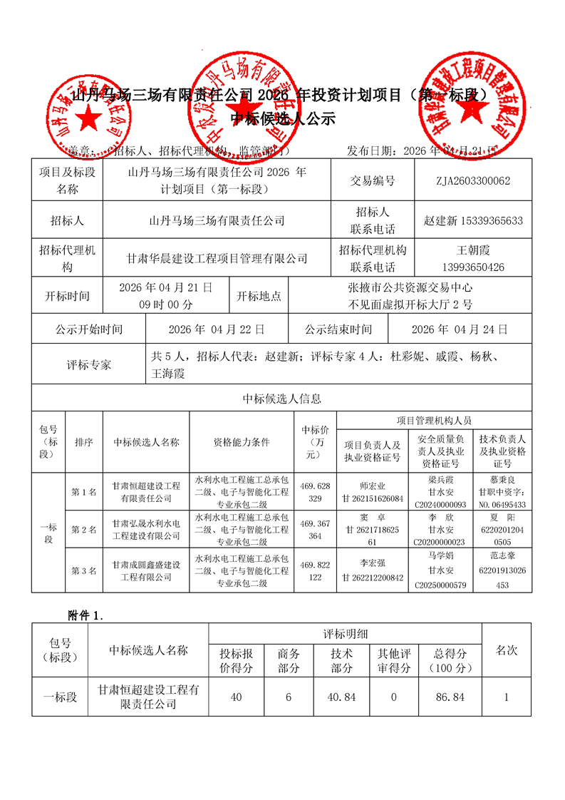 [市本级]山丹马场三场有限责任公司2026 年投资计划项目第一标段中标候选人公示[交易结果公示]