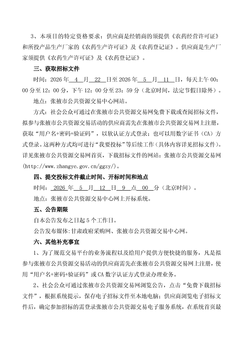 2026年山丹县小麦“一喷三防”项目公开招标公告{type}