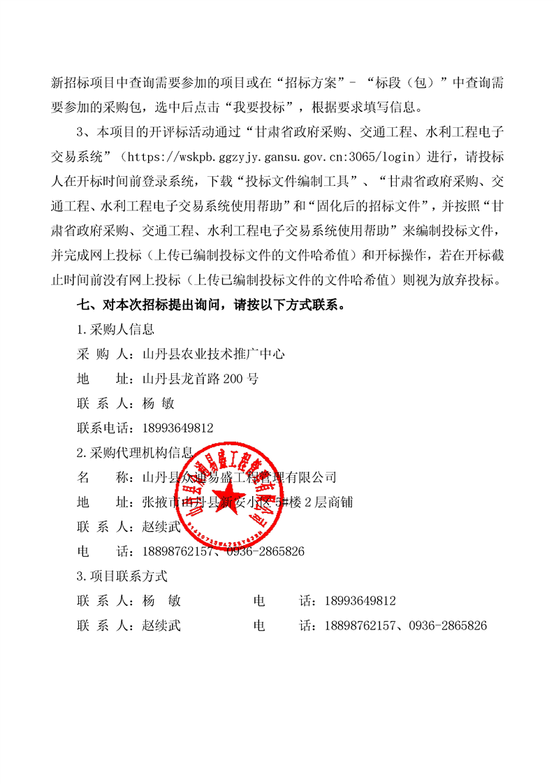 交易平台:张掖市公共资源交易中心山丹县分中心招标/采购项目编号:********************投标登记截止时间:********** **:**:**