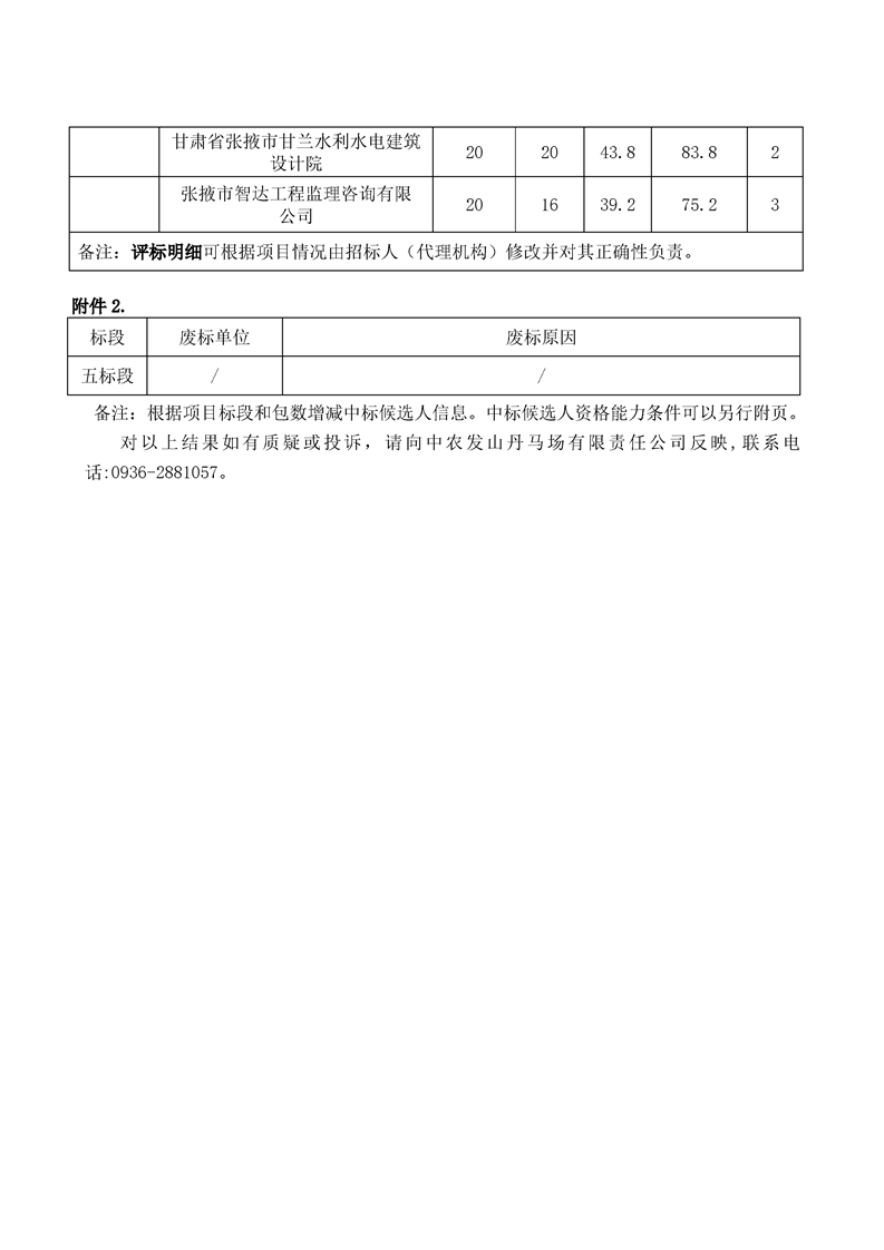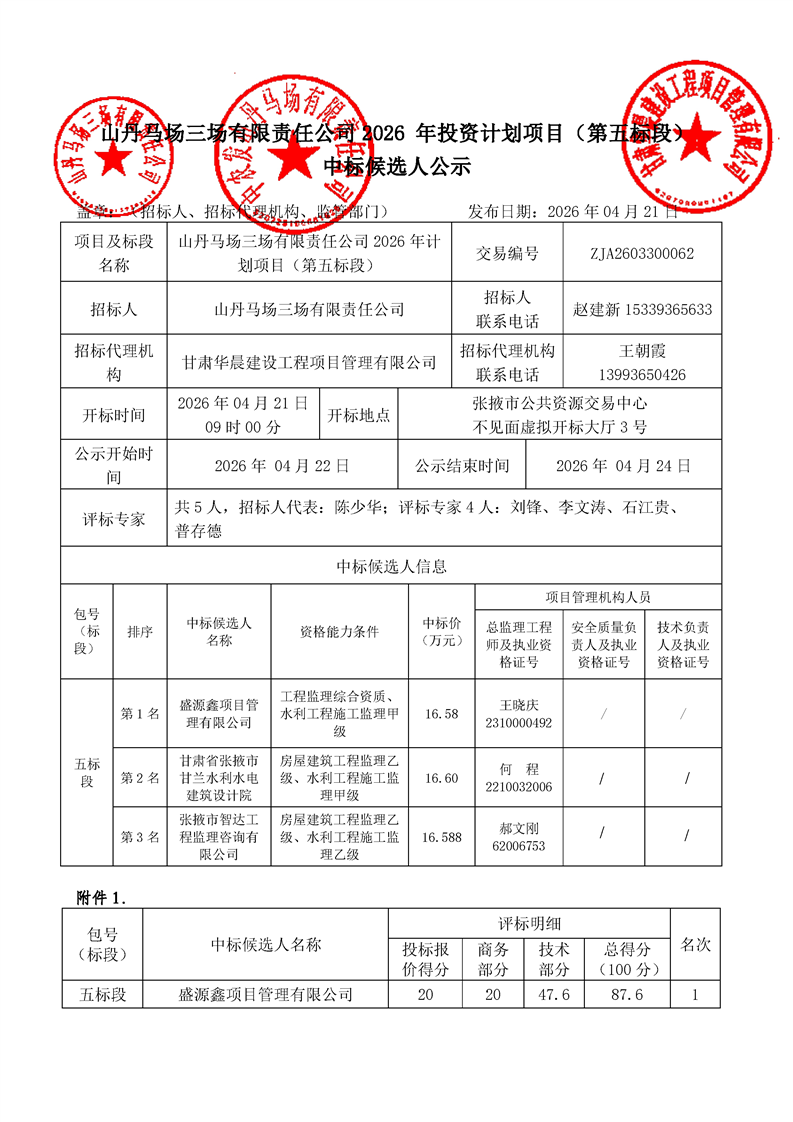 [市本级]山丹马场三场有限责任公司2026 年投资计划项目第五标段中标候选人公示[交易结果公示]