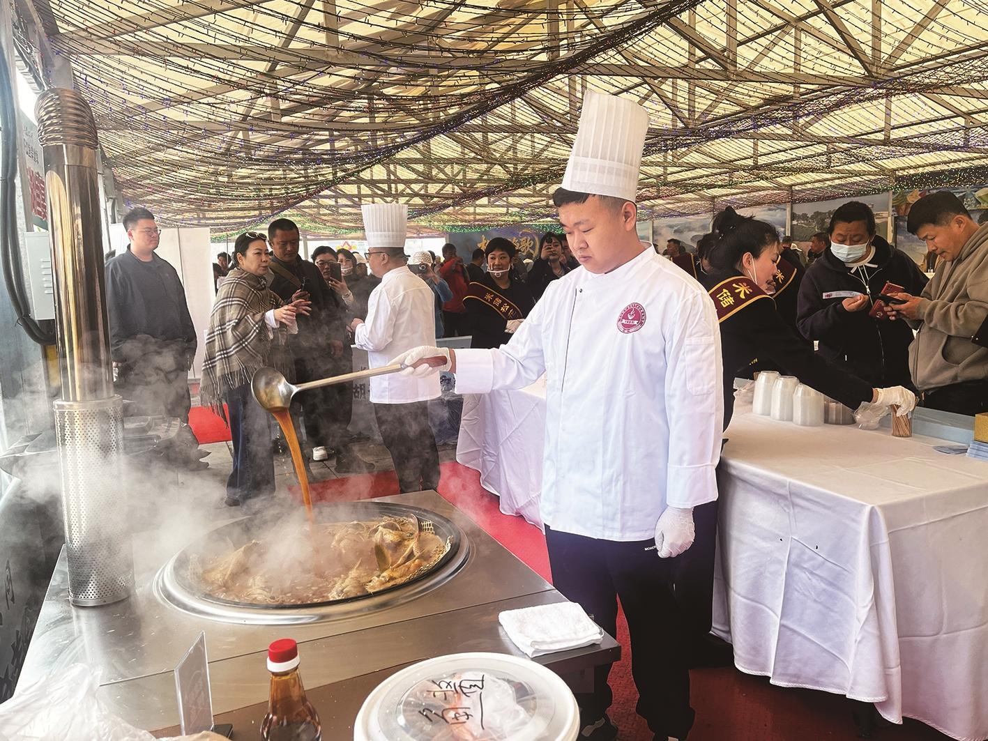 在蛟河市庆岭镇活鱼一条街,以“春醒松湖·鱼跃蛟河”为主题的开街活动火热启幕。活动现场,特色巴拉文化展演精彩亮相,尽显古老渔猎部落的神秘风情与豪放气韵。大厨们以松花湖鲜嫩开江鱼为核心食材,现场展演吉林省非物质文化遗产代表性项目“蛟河市庆岭活鱼烹饪技艺”,香气四溢的开江鱼宴吸引众多游客与市民前来品尝“开春第一鲜”。现场还设置了美食集市,集中展销各类开江鱼、新鲜山野菜、土特产及文创产品,商户与游客热烈互动,营造出浓郁的节庆氛围。