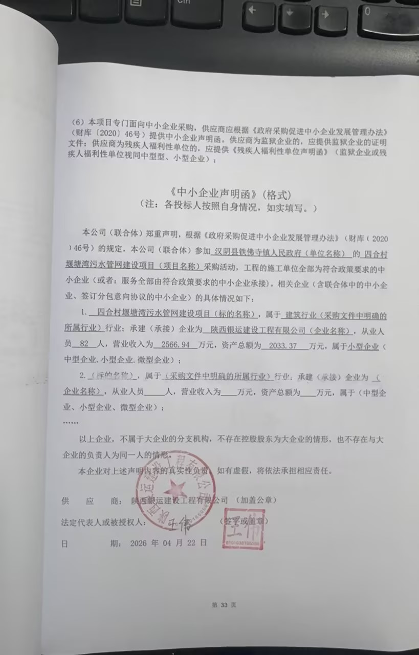 汉阴县铁佛寺镇人民政府四合村堰塘湾污水管网建设项目中标(成交)结果公告