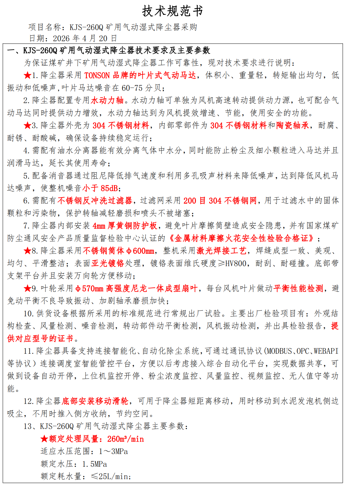 内蒙古金陶股份有限公司矿用气动湿式除尘器采购任务
